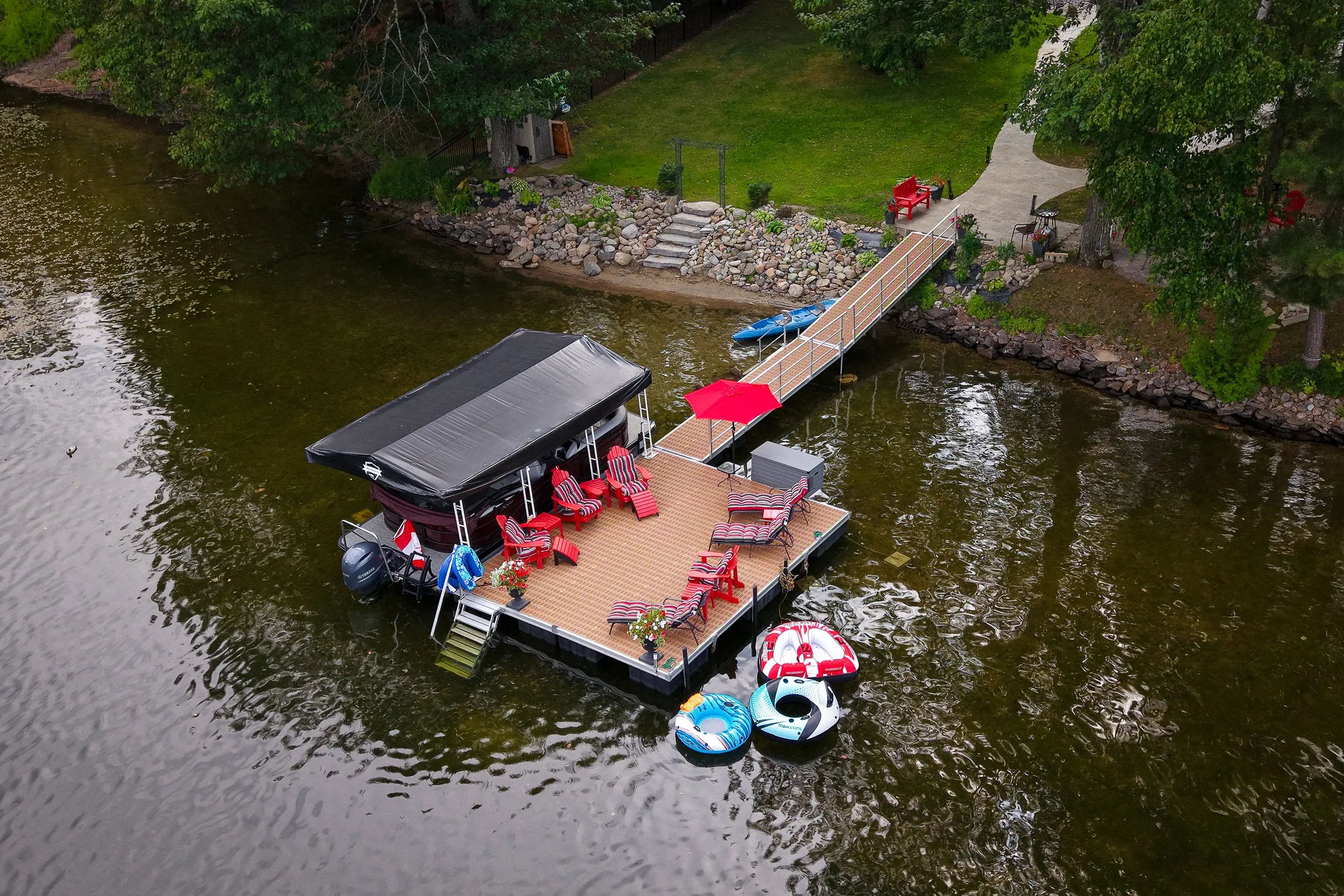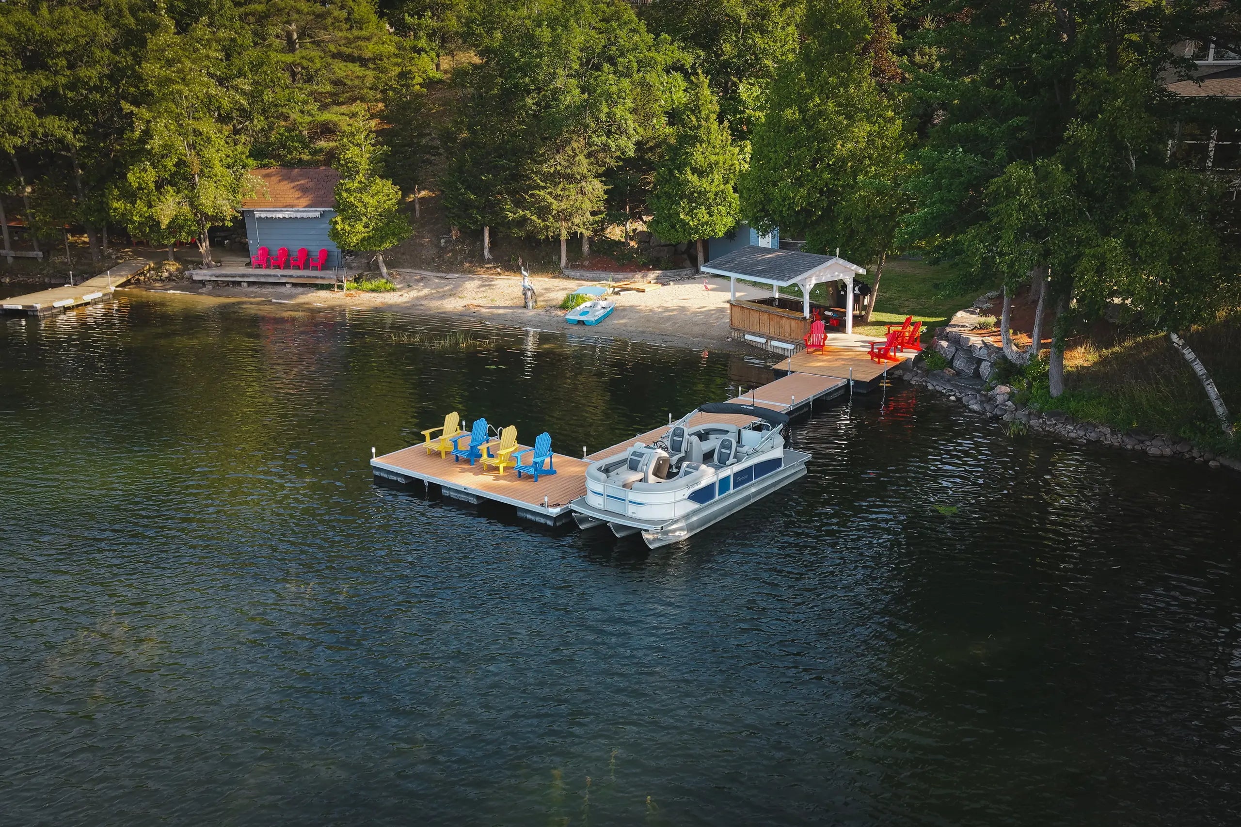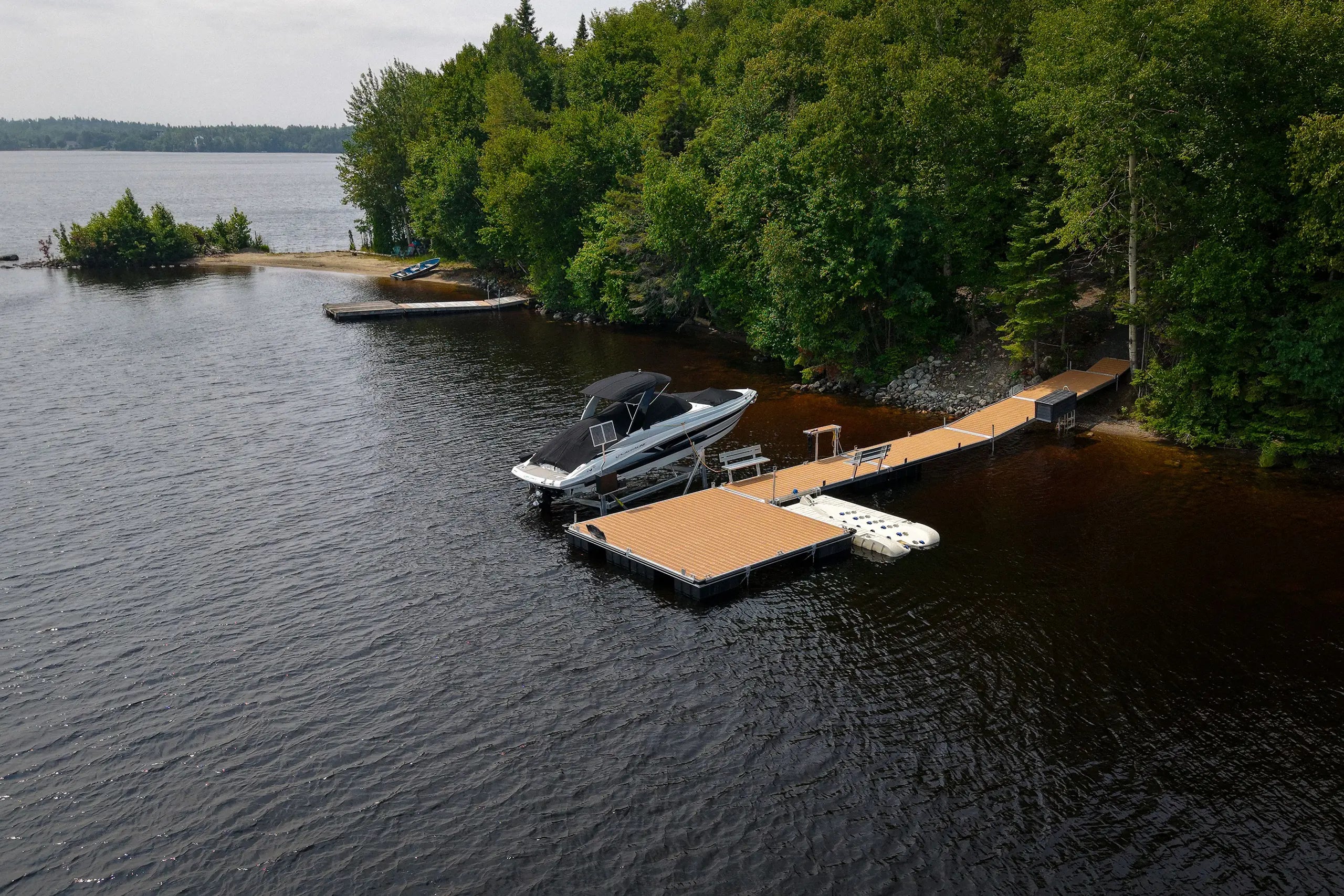 Quelle est la différence entre un quai sur poteaux et un quai flottant? Un quai sur poteaux s’installe en eau peu profonde et est soutenu par des pieux ancrés au fond de l’eau. Il doit être retiré complètement à l’automne et réinstallé au printemps.